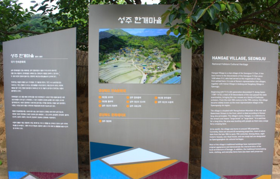 한 개라는 마을 이름은 예전에 이곳에 큰 개물 또는 나루가 있어 붙여진 이름이라고 합니다. 조선 세종 때 진주목사를 역임한 이우가 처음 입 향하여 개척한 마을로서 그 후손들이 모여 살고 있는 성산이 씨 집성촌으로 17세기부터 과거 합격자를 많이 배출하였으며 75호의 전통가옥 옥이 있고 10동의 건물은 경상북도 문화재로 지정되었습니다.